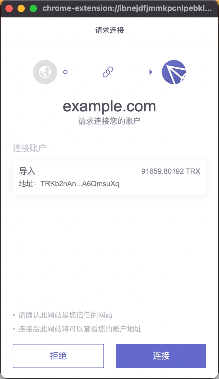 触发tron_requestAccounts之后,会打开连接确认的弹窗: